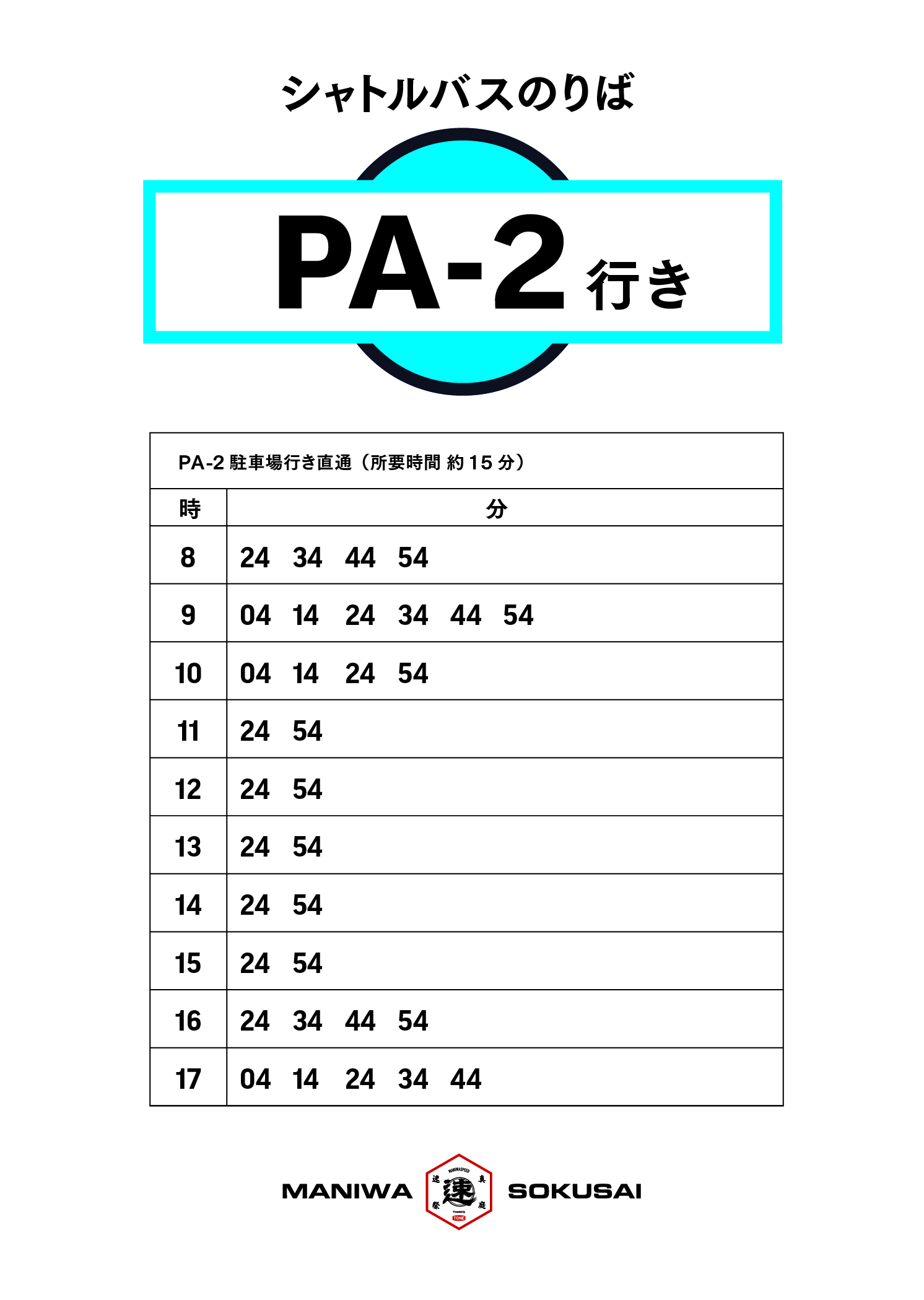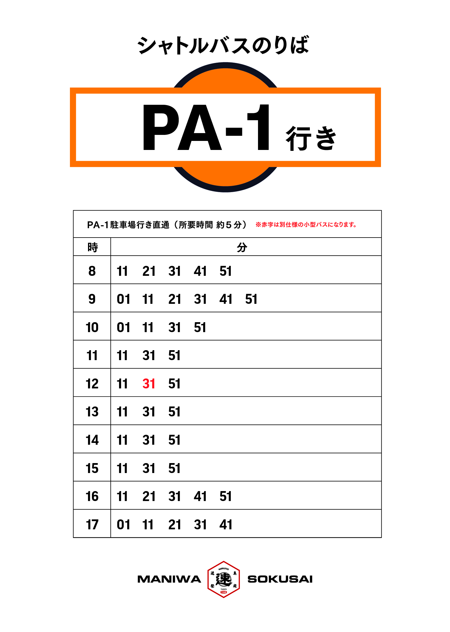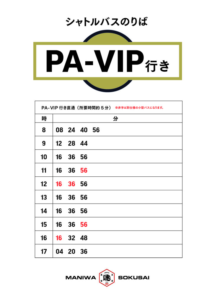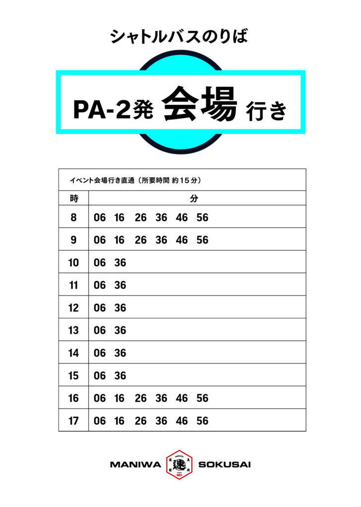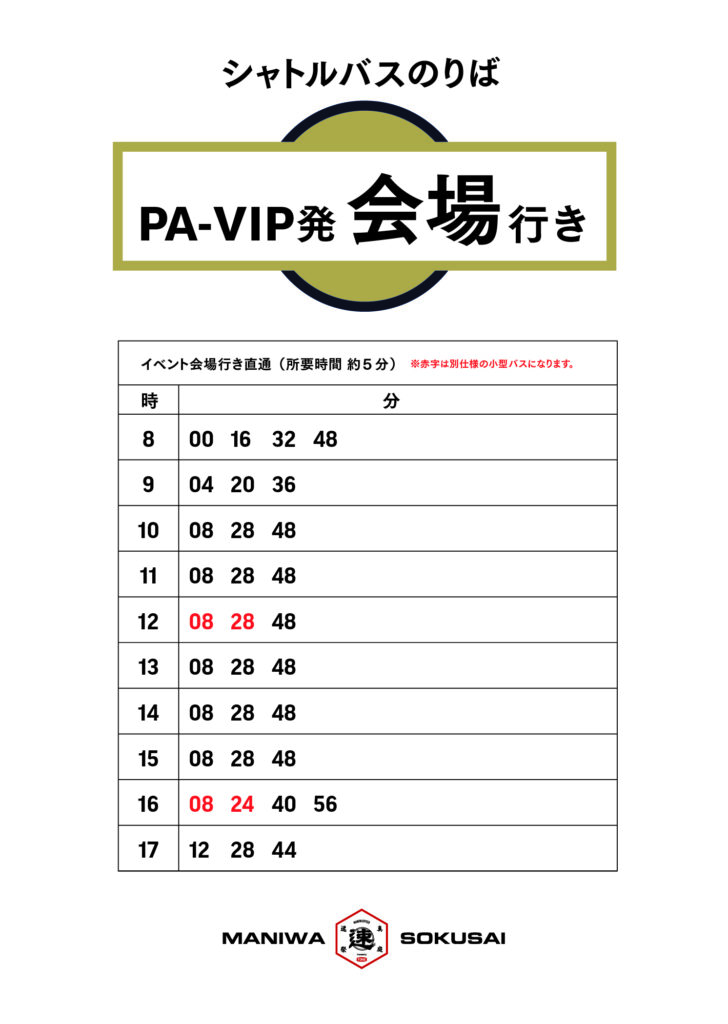 MH News 真庭速祭2025 シャトルバス時刻表のご案内(更新) 2025.11.22 駐車場発 会場行き シャトルバス時刻表(11月23日 6時更新版) 会場発 駐車場行き バス時刻表 Back to list PrevNext